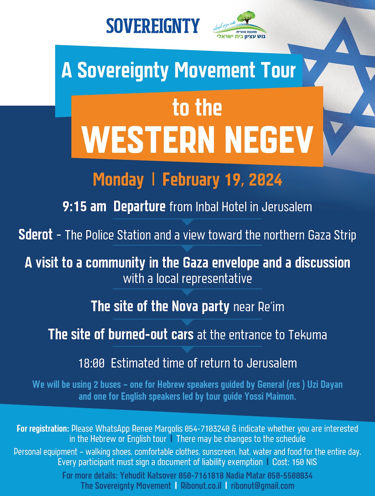 In your whatsapp please specify if you are registering for the English or Hebrew bus.